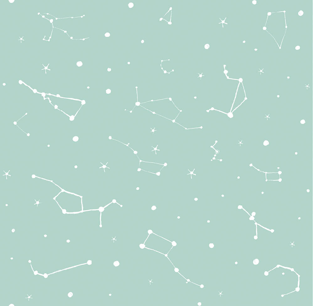 ¡El universo entero en tu casa! Nuestro modelo Cosmos te trae a la Osa Mayor, a la Osa Menor, Andrómeda, Orión, y a la Vía Láctea al completo. Ilustración de constelaciones y estrellas en acuarela de color mostaza sobre fondo blanco. Combínalo con nuestra “Rayas 3D” o con el modelo “Naves”.Lo encontrarás disponible en colores diferentes.