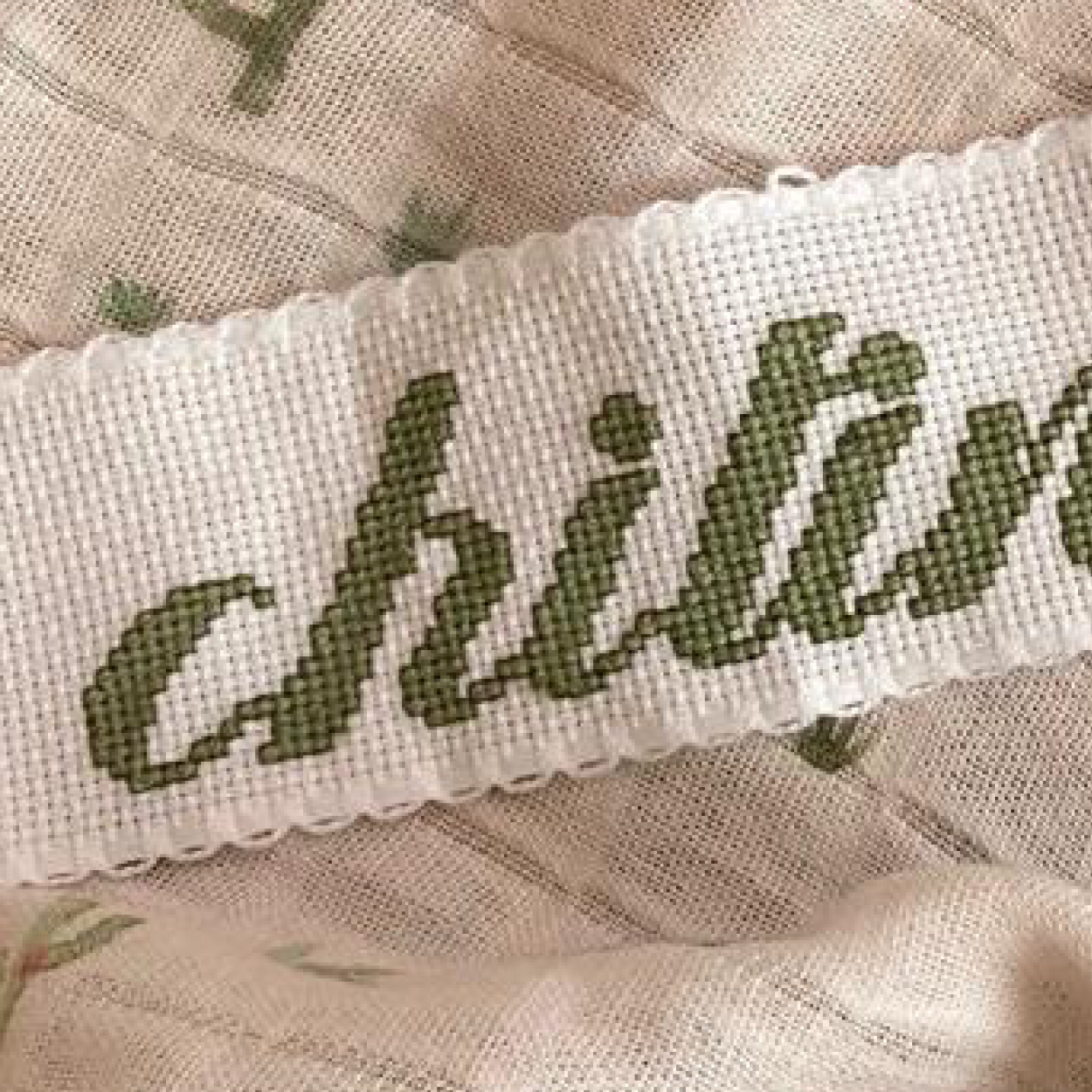 PERSONALIZADA por Yokoso con el nombre del bebé: Bordado en punto de cruz, hilo doble de bordar en dos tonos. Entrega en 10 días desde la realización del pedido.