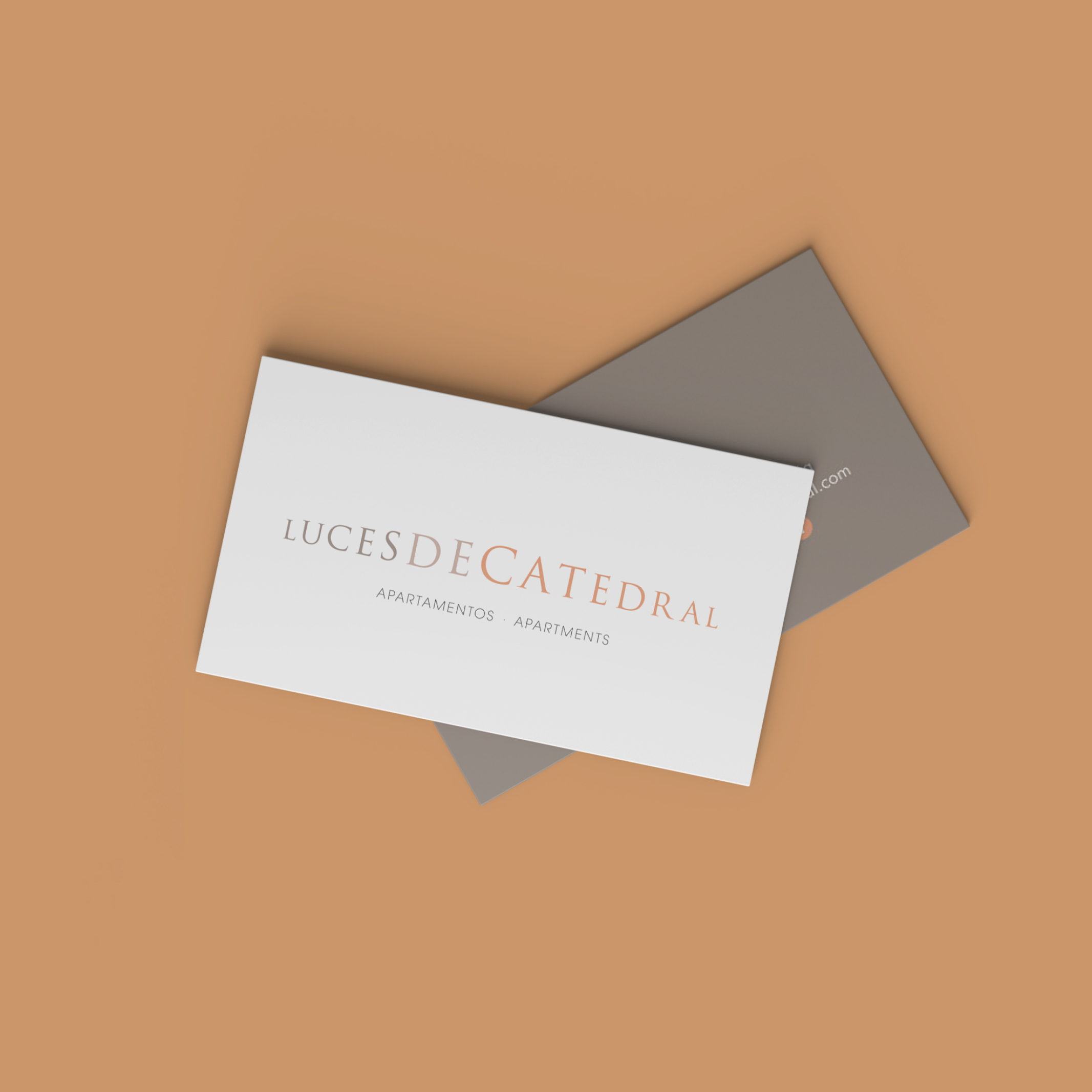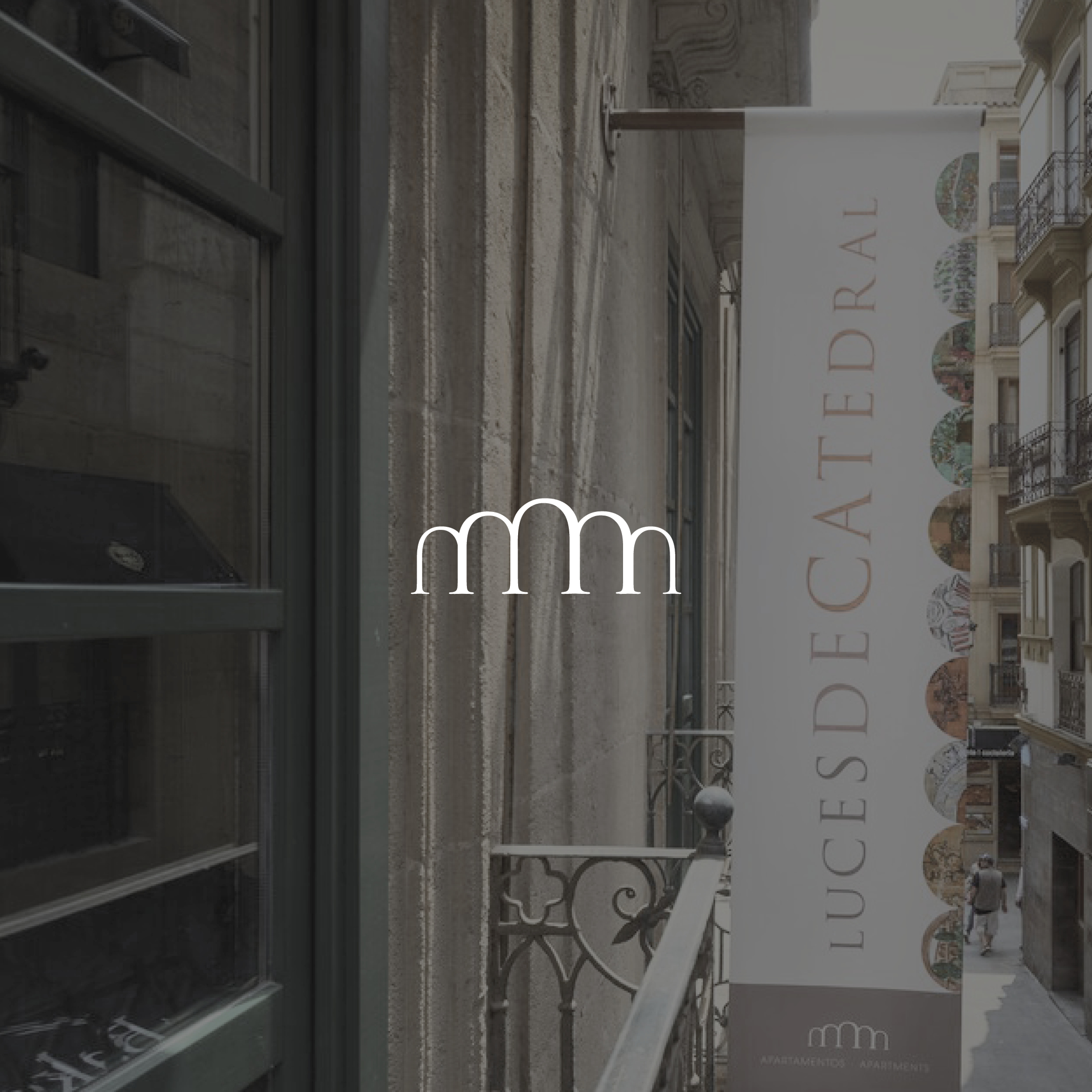 Diseño de marca, identidad gráfica y señalética para Luces de Catedral. Apartamentos turísticos de calidad en el casco antiguo de Alicante. Desde 2015.